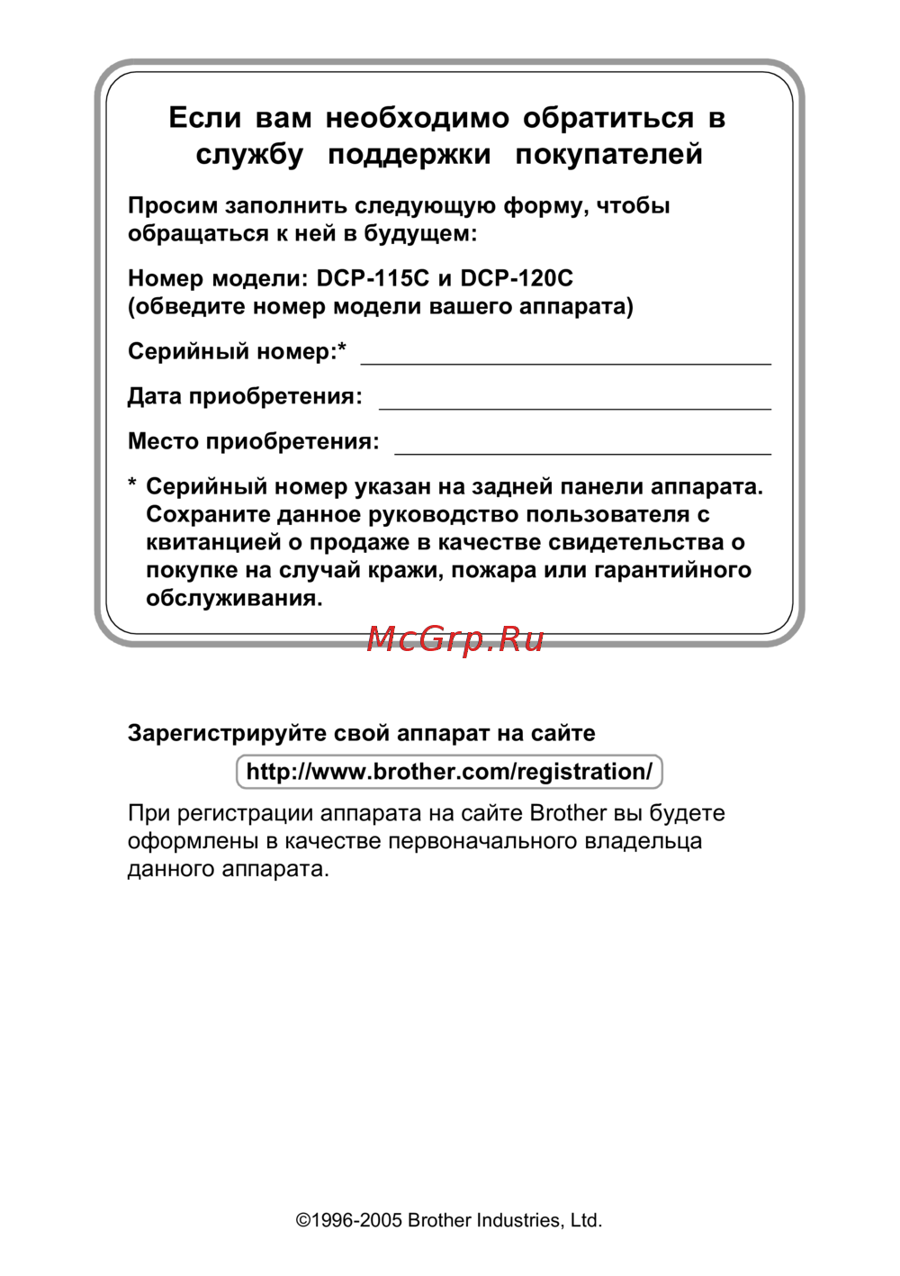 Brother DCP-120C — обратитесь в службу поддержки покупателей: заполните форму [2/108]