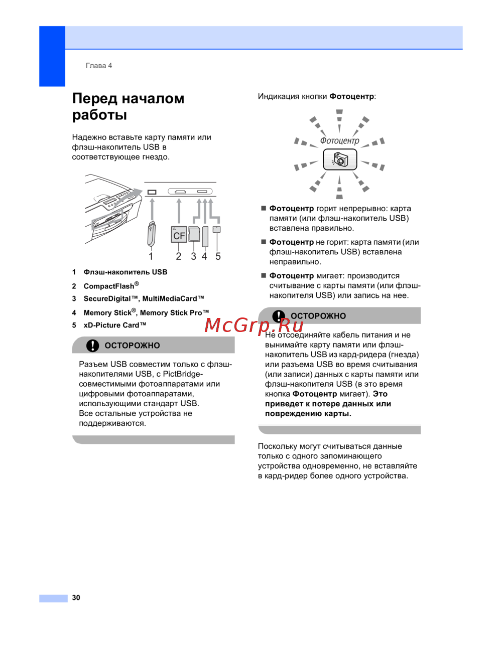 Brother DCP-153C — как правильно использовать карты памяти и флэш-накопители [38/103]