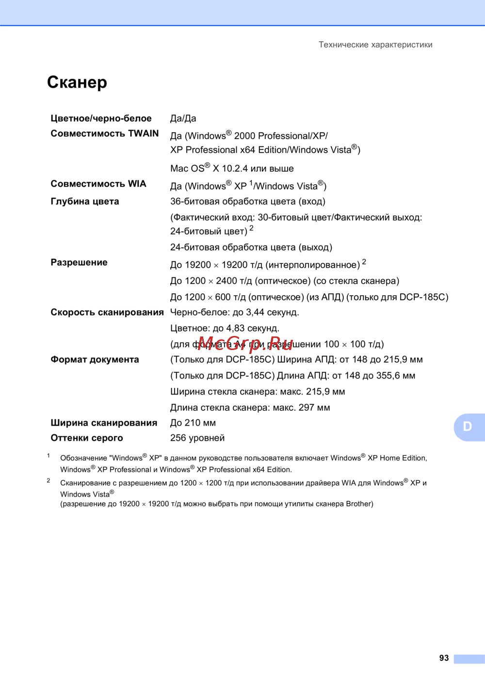 Brother DCP-145C — технические характеристики сканеров: разрешение, совместимость и скорость [101/111]