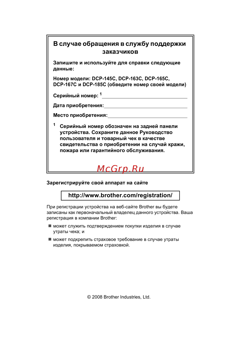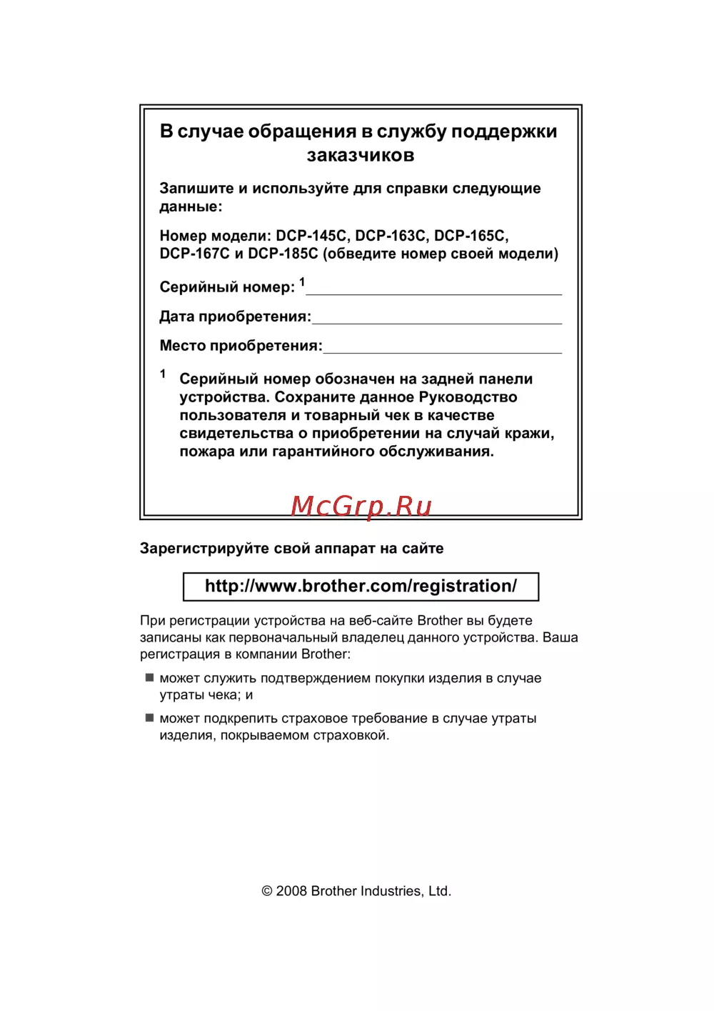 Brother DCP-145C — информация для обращения в службу поддержки заказчиков [2/111]