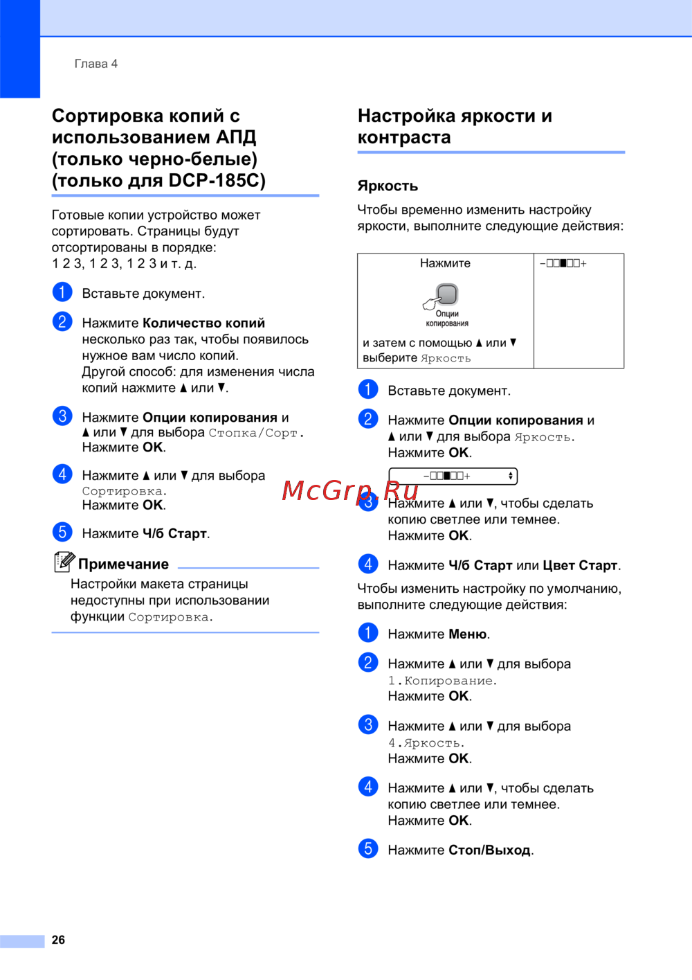 - Руководство пользователя dcp 145c dcp 163c dcp 165c dcp 167c dcp 185c p.1