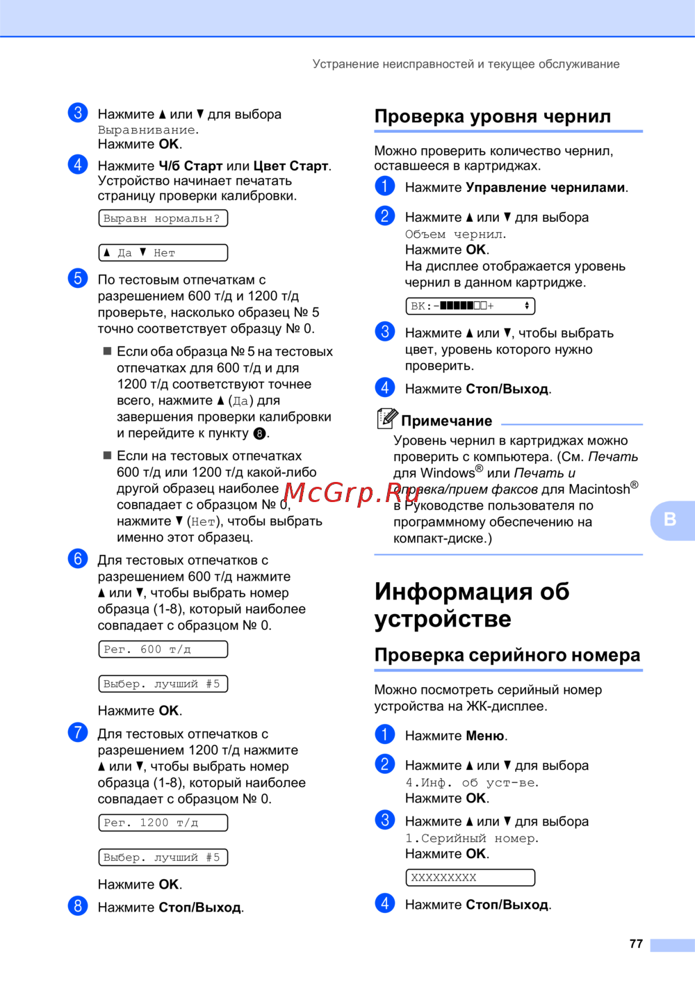 Узнайте, как правильно выполнять устранение неисправностей и текущее обслуживание печатающих устройств. Подробные инструкции по калибровке и проверке уровня чернил.