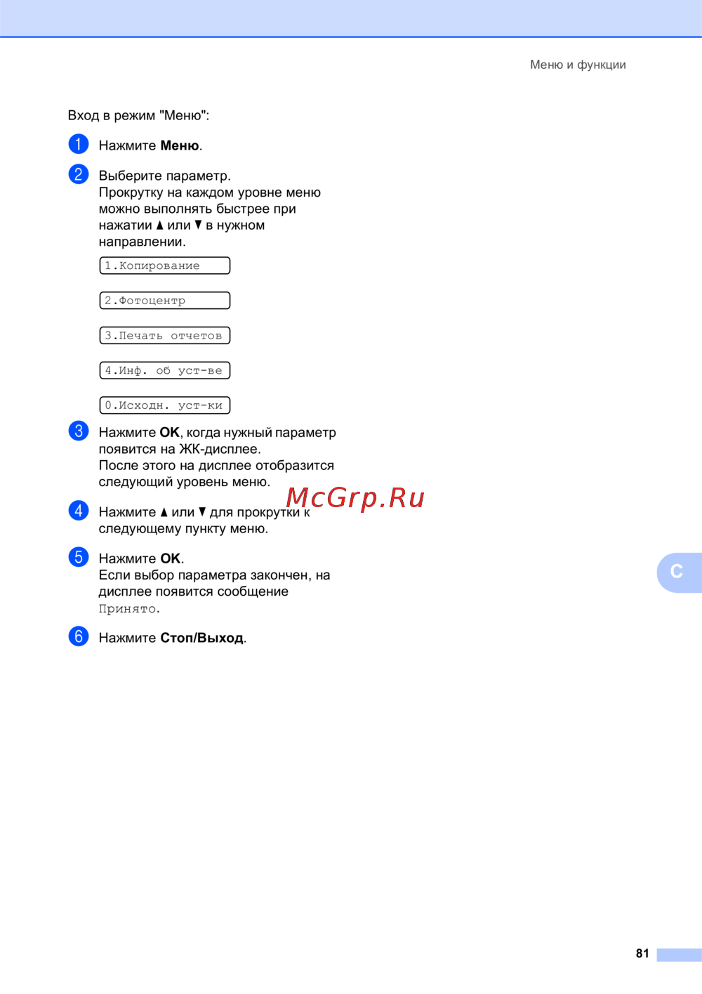 Brother DCP-145C — как использовать меню и функции устройства: пошаговая инструкция [89/111]