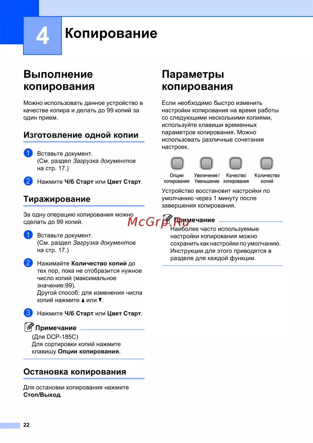 Brother DCP-163C — инструкция по копированию: как сделать до 99 копий за раз [30/111]