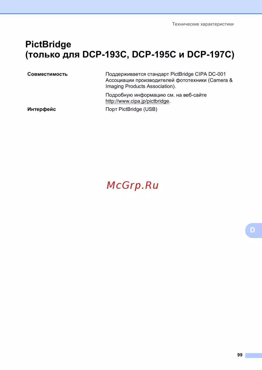 - Pictbridge только для dcp 193c dcp 195c и dcp 197c p.107