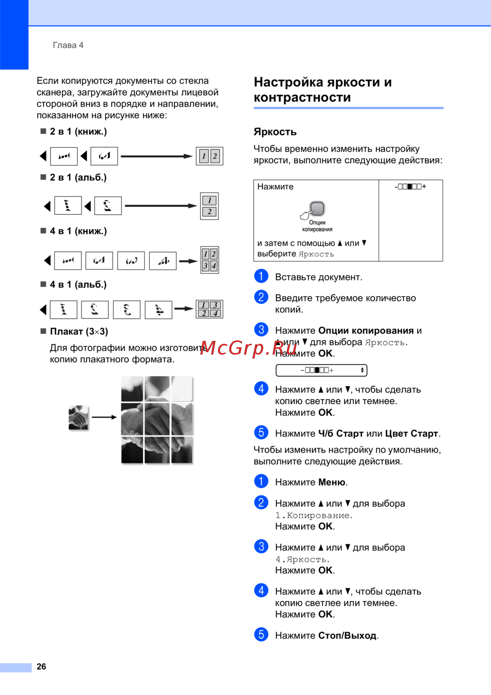 Узнайте, как правильно загружать документы в сканер для копирования, чтобы избежать ошибок. Настройте яркость и контрастность для идеальных копий. Порядок загрузки документов.
