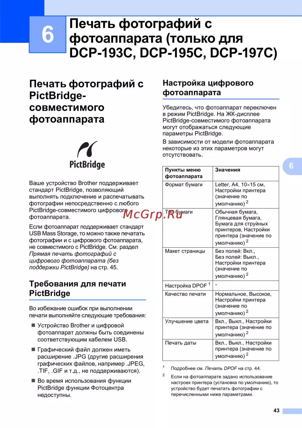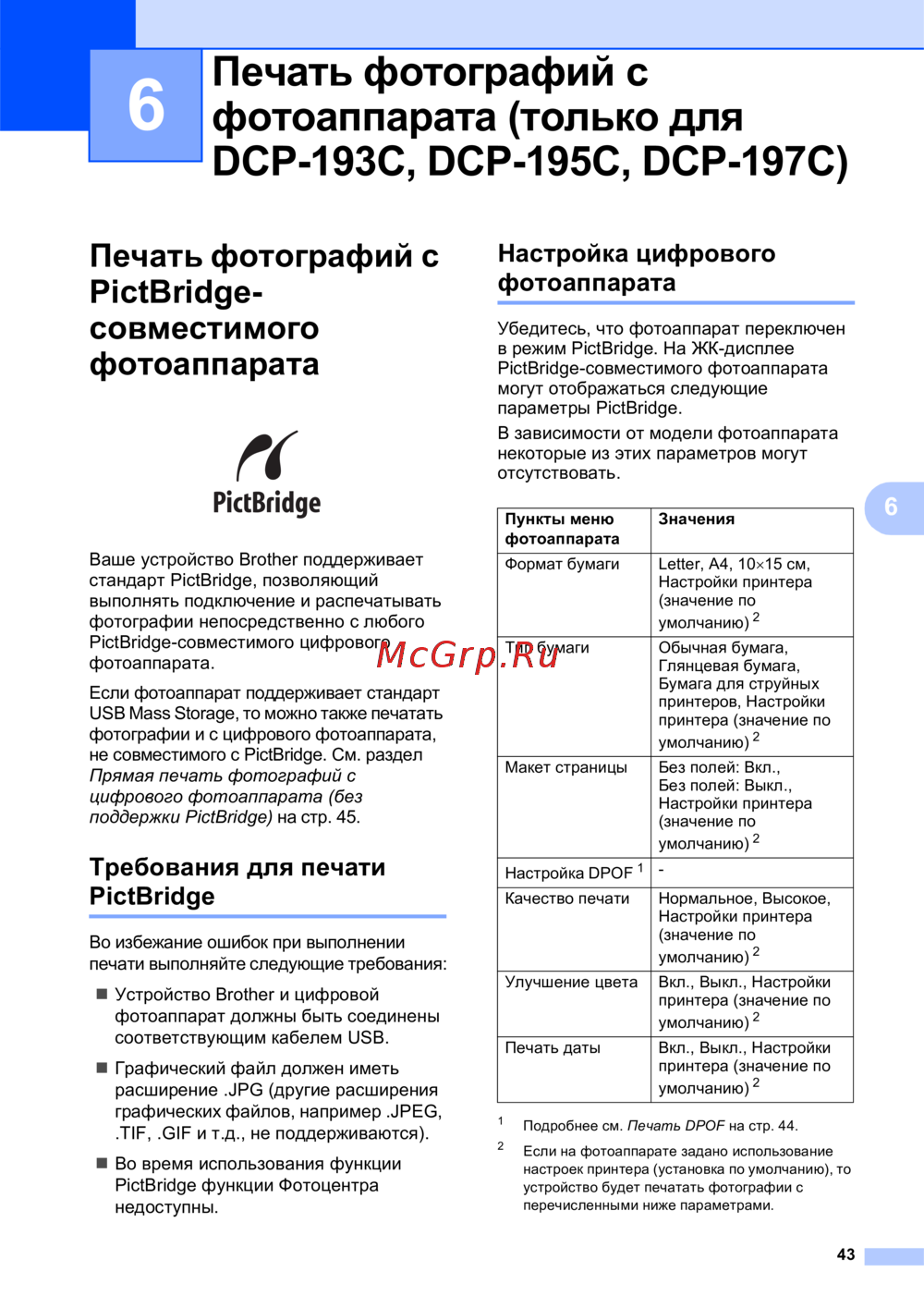 - Печать фотографий с фотоаппарата только для dcp 193c dcp 195c dcp 197c 43 p.6