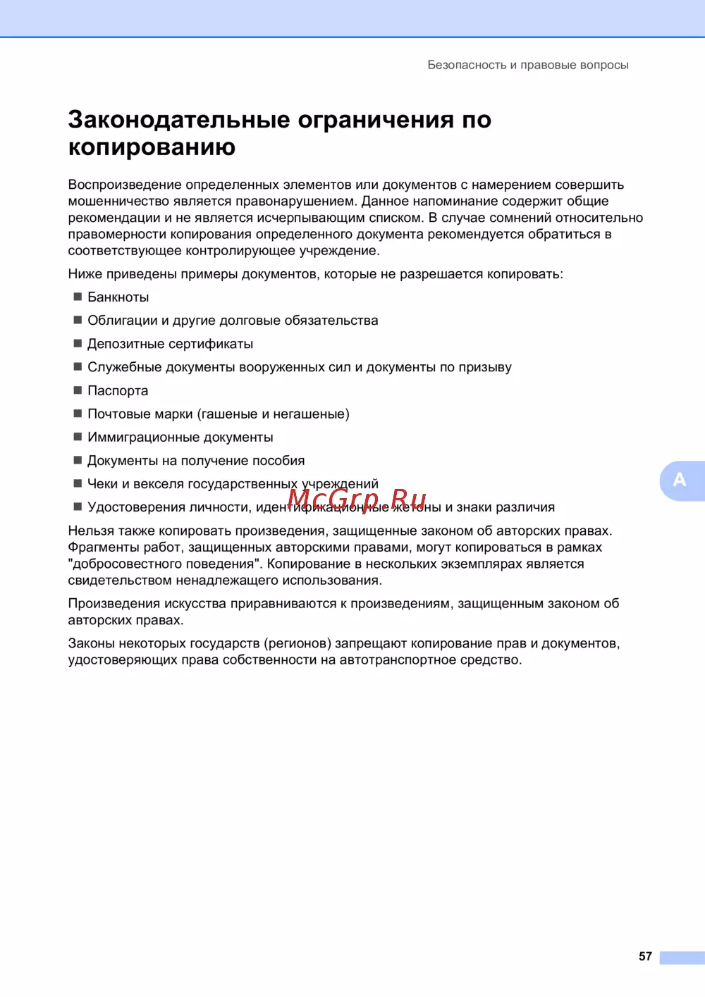Brother DCP-373CW — правовые аспекты копирования документов и безопасность информации [65/118]