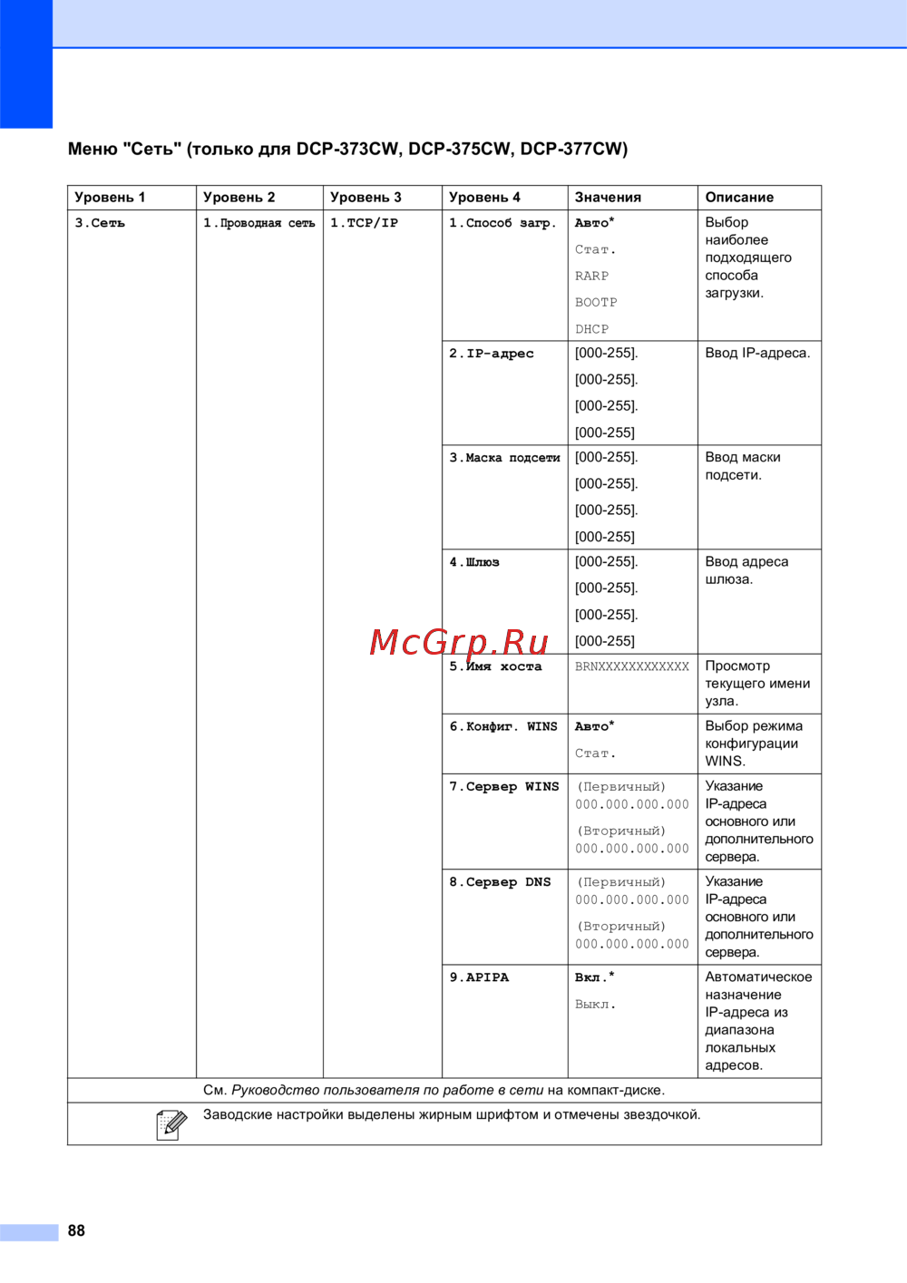 - Меню сеть только для dcp 373cw dcp 375cw dcp 377cw p.96