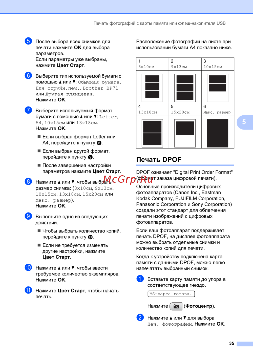 Brother DCP-375CW — печать фотографий с карты памяти: пошаговая инструкция и настройки [43/118]