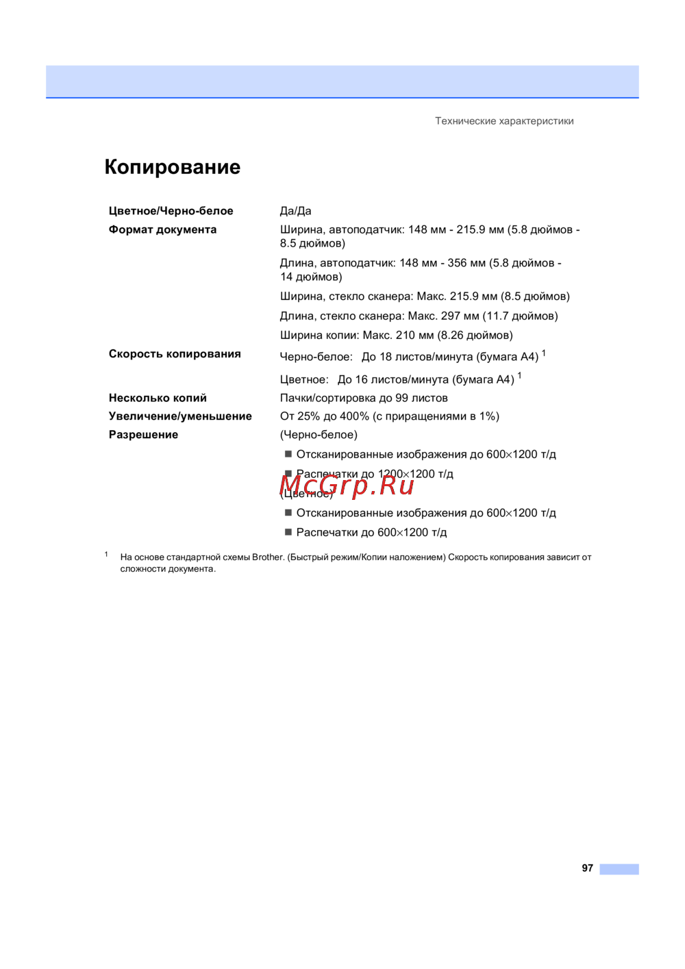 Brother DCP-330C — технические характеристики копировального устройства [105/117]
