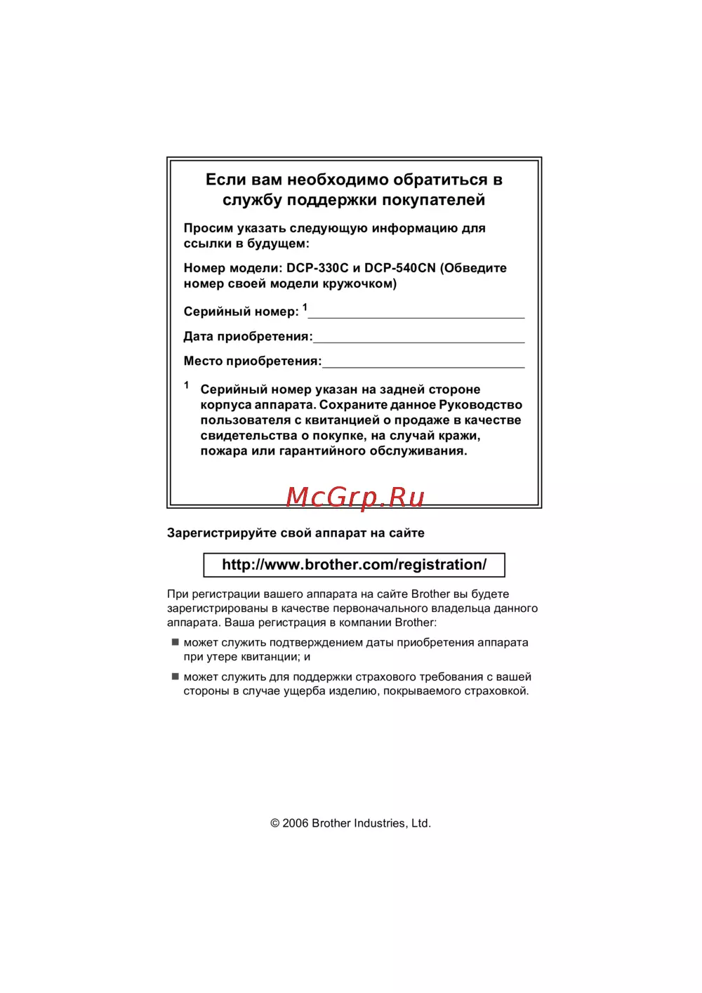 Brother DCP-330C — информация для обращения в службу поддержки покупателей [2/117]