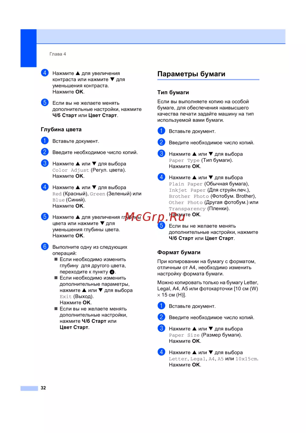 ![Brother DCP-330C [40/117] Формат бумаги](/views2/1025690/page40/bg28.png)