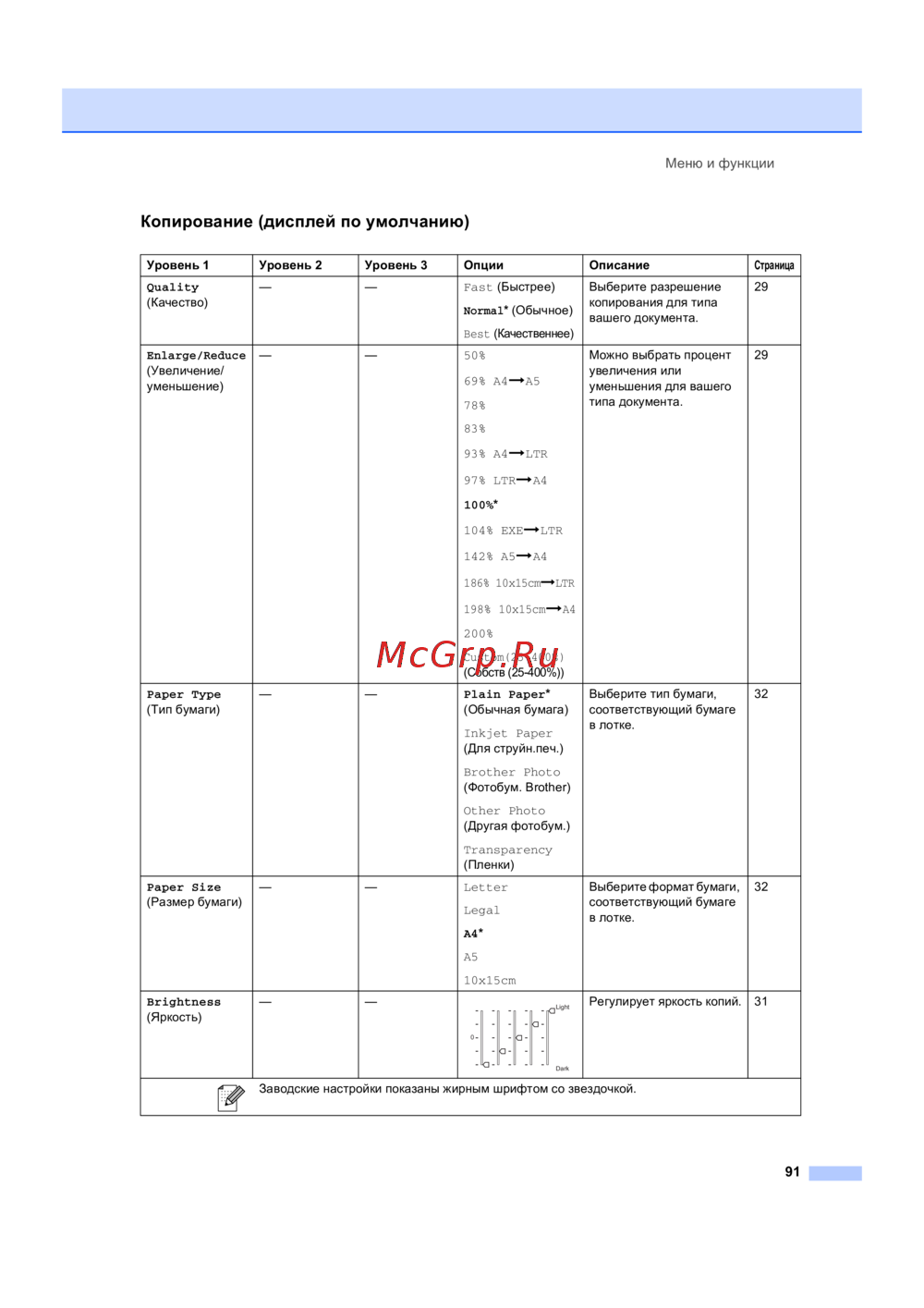 Brother DCP-330C — настройки копирования: качество, размер и тип бумаги [99/117]