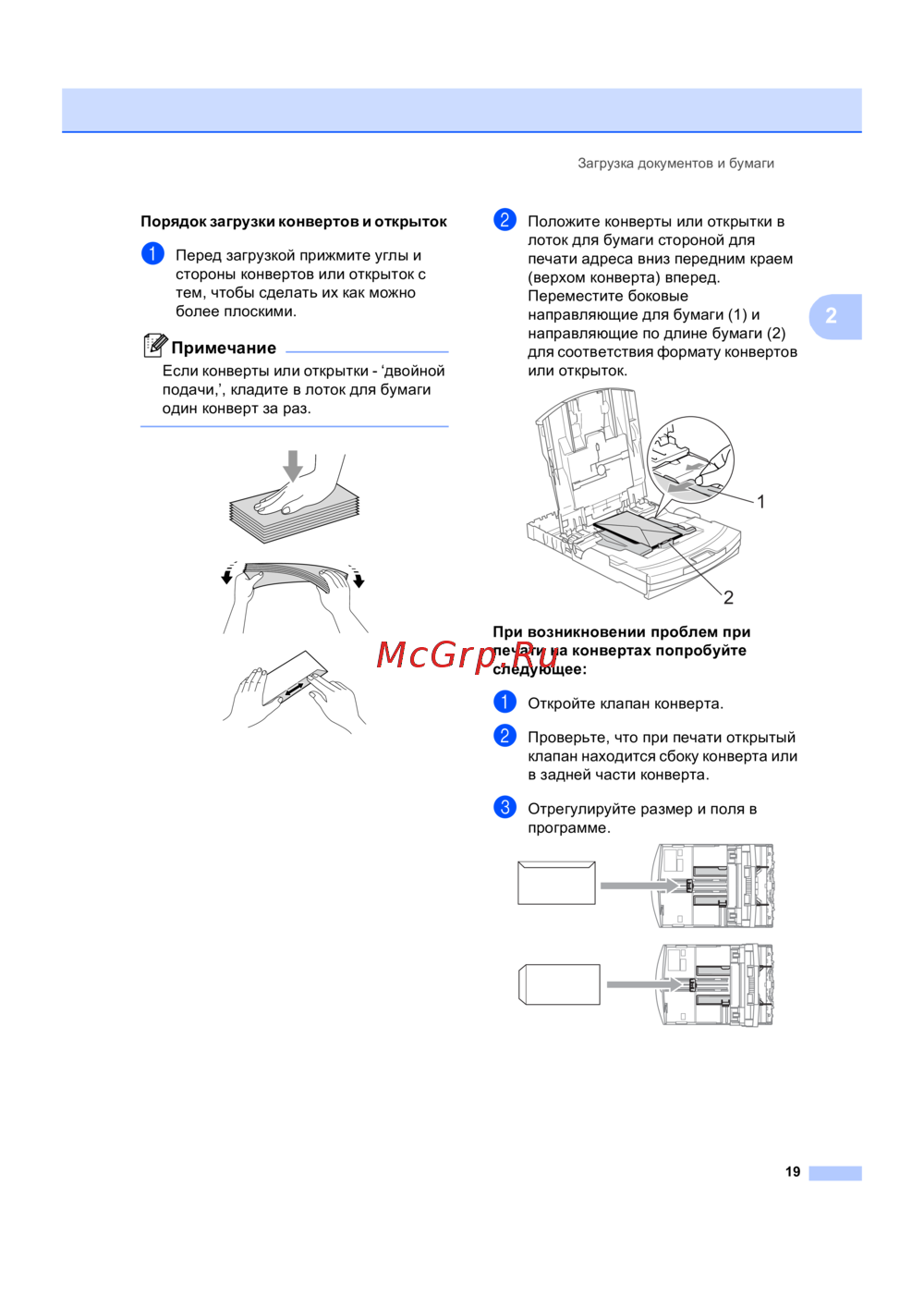 Brother DCP-540CN — инструкция по загрузке конвертов и открыток для печати [27/117]
