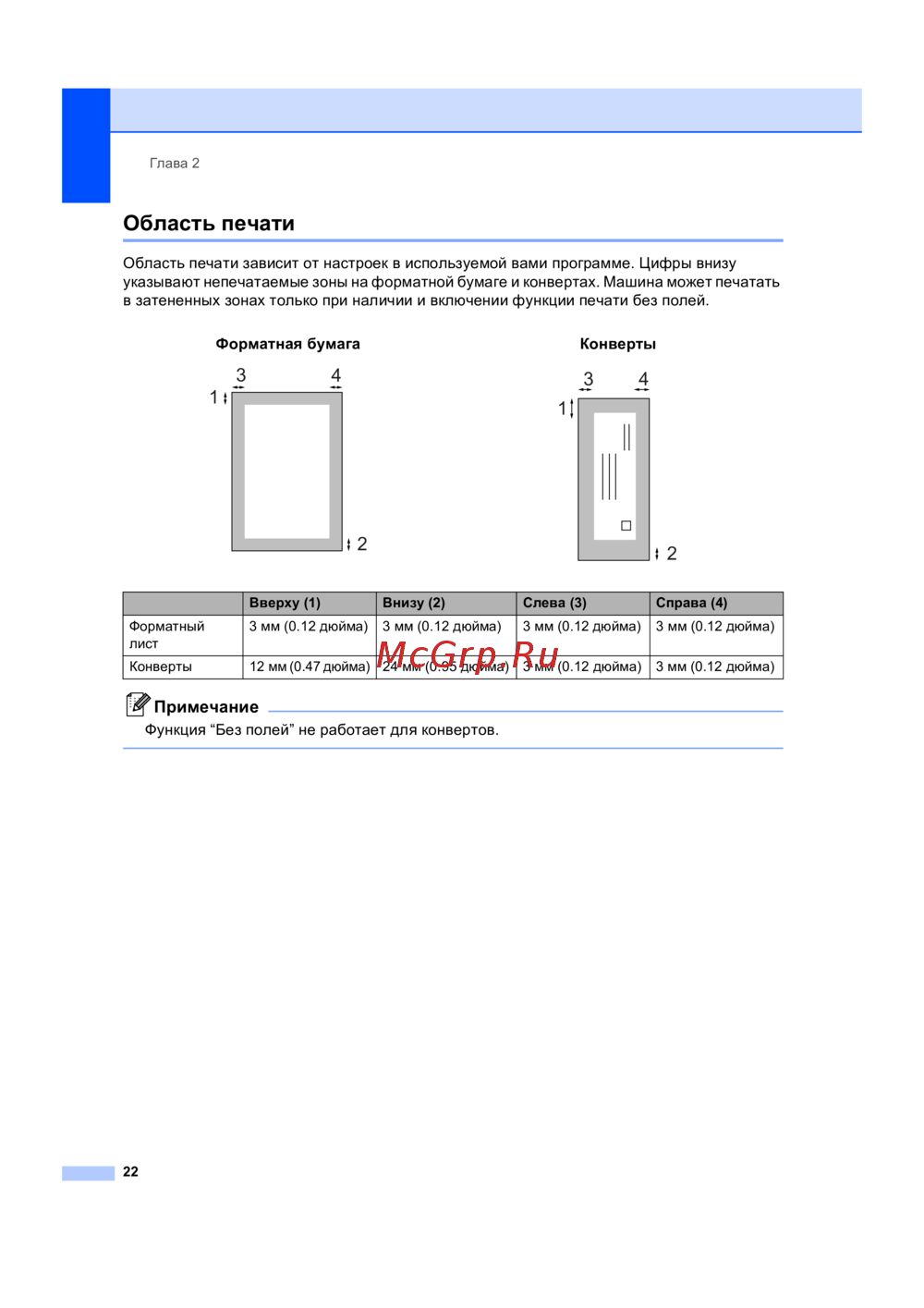 указывают непечатаемые зоны на форматной бумаге и конвертах. Машина может печатать