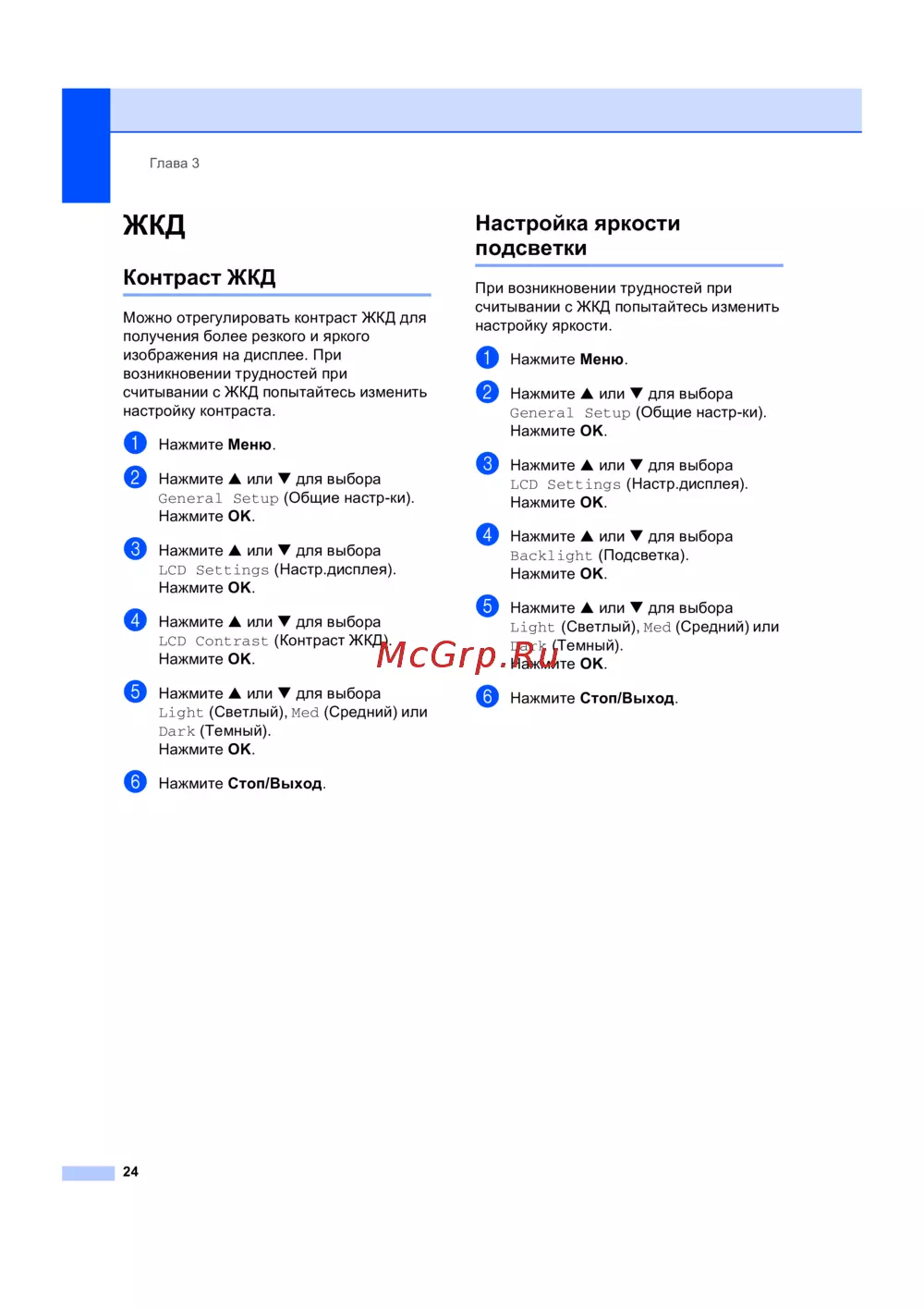 Brother DCP-540CN [32/117] Настройка яркости подсветки