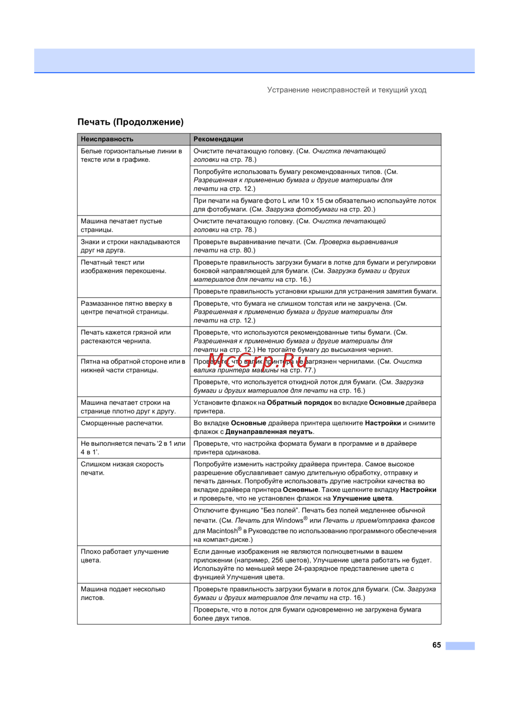 - Большую часть ошибок можно устранить собственными силами если вам потребуется дополнительная помощь brother solutions center предоставляет ответы на наиболее часто задаваемые вопросы и рекомендации по устранению неисправностей p.77