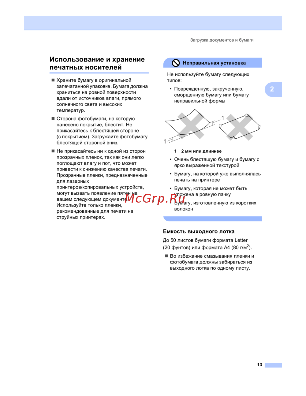 Brother DCP-353C — правила хранения и использования печатных носителей и бумаги [21/125]