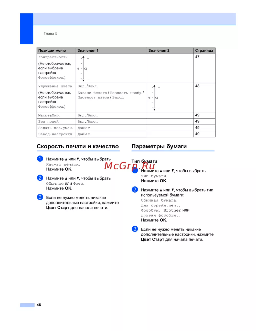Brother DCP-353C — настройки печати: скорость, качество и параметры бумаги [54/125]