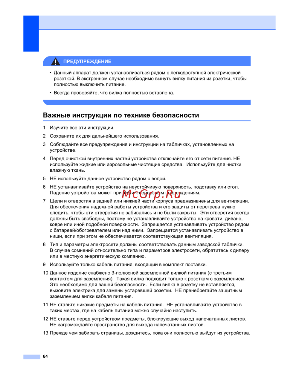 - Важные инструкции по технике безопасности p.72