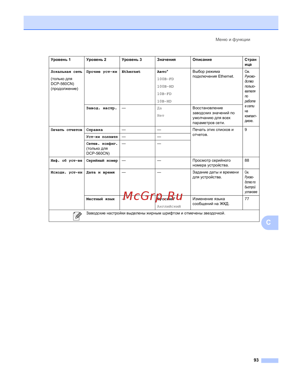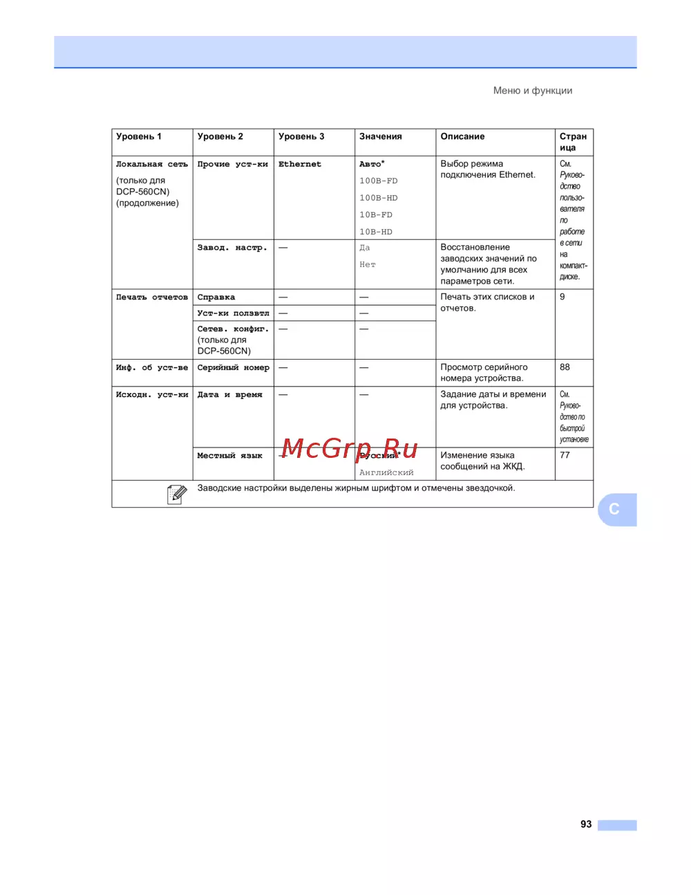 Brother DCP-560CN — настройки и функции локальной сети для устройств [101/125]