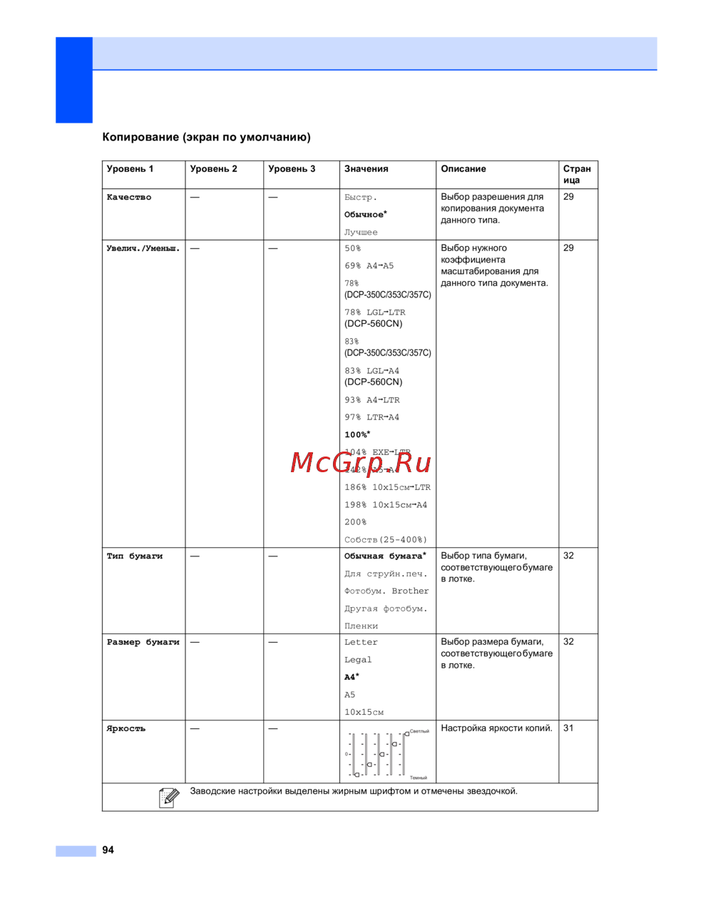 Настройка яркости копий.31