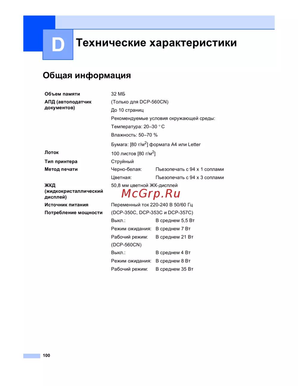 ![Brother DCP-560CN [108/125] Технические характеристики](/views2/1025704/page108/bg6c.png)