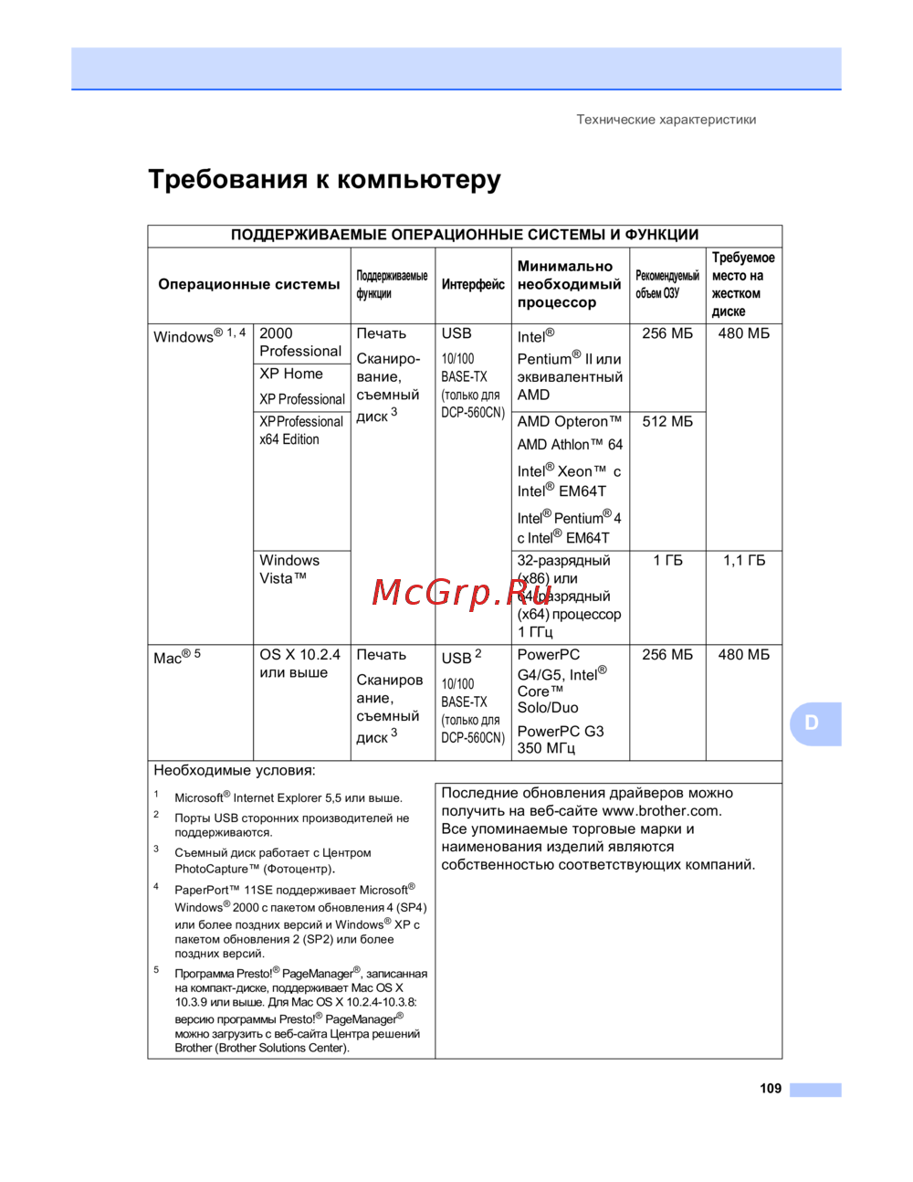 Brother DCP-560CN — технические характеристики и системные требования для устройств [117/125]