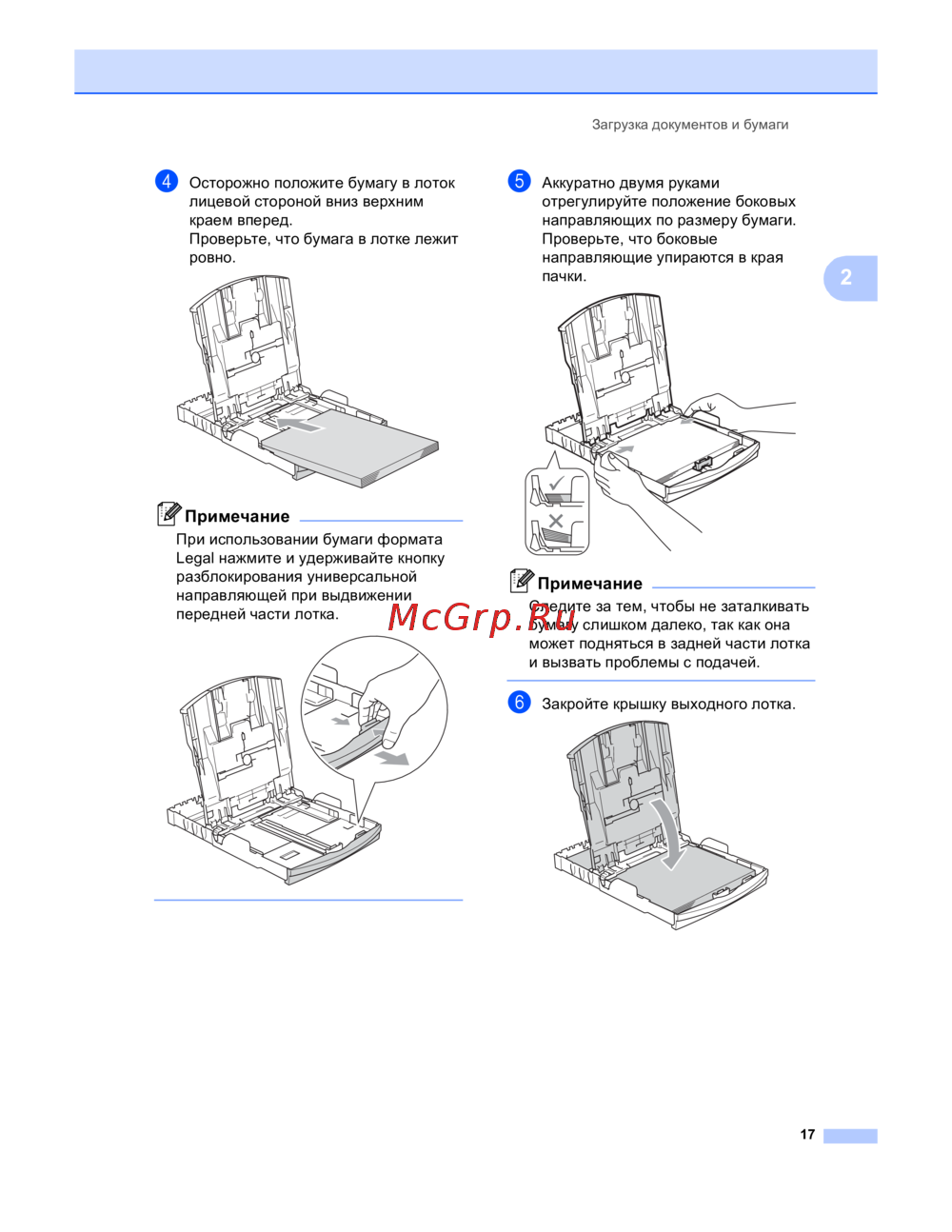 Brother DCP-560CN — правильная загрузка бумаги в лоток для печати [25/125]