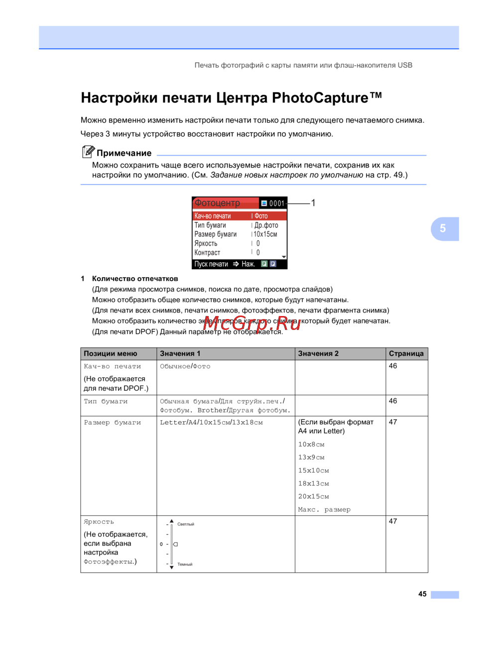Brother DCP-560CN — настройки печати фотографий с карты памяти и USB-накопителя [53/125]