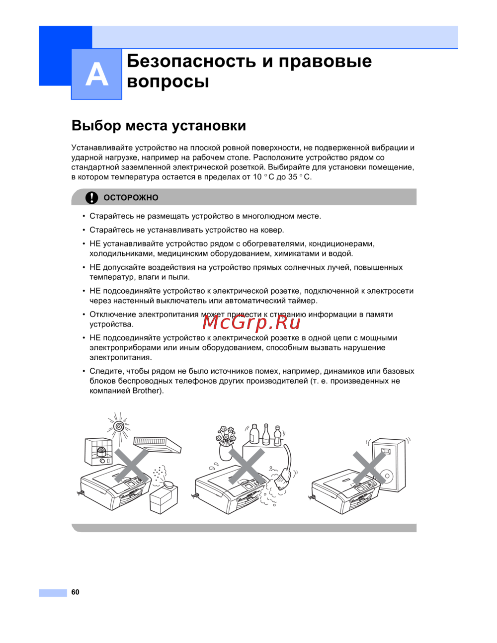 ![Brother DCP-560CN [68/125] Выбор места установки](/views2/1025704/page68/bg44.png)