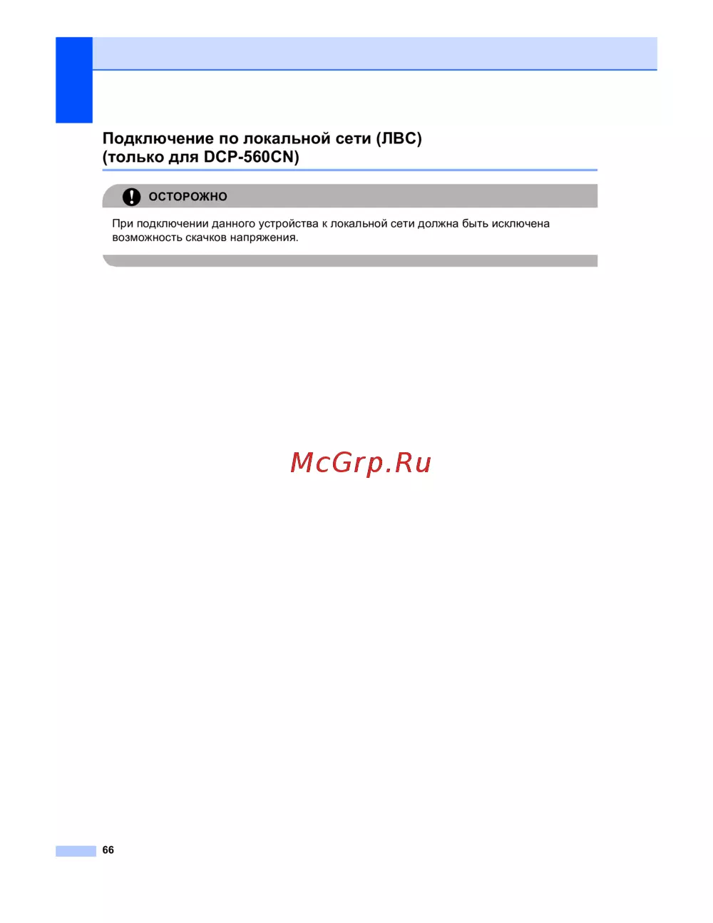 Brother DCP-560CN [74/125] При подключении данного устройства к локальной сети должна быть исключена возможность скачков напряжения