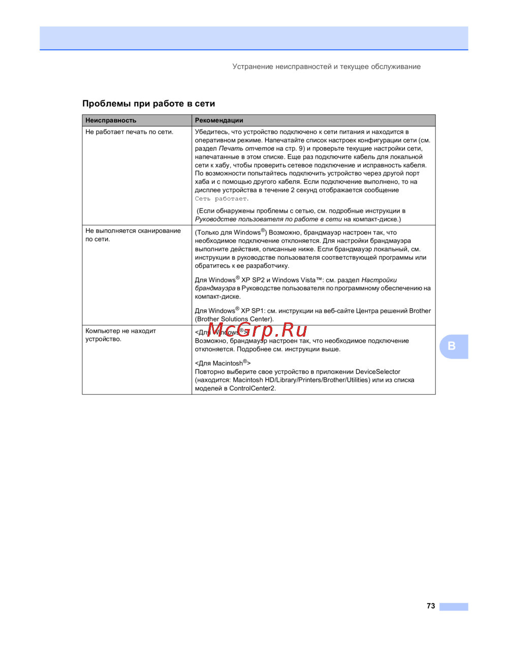 - Большую часть проблем можно решить самостоятельно если требуется дополнительная помощь в центре решений brother brother solutions center можно получить ответы на часто задаваемые вопросы и рекомендации по устранению неисправностей p.82