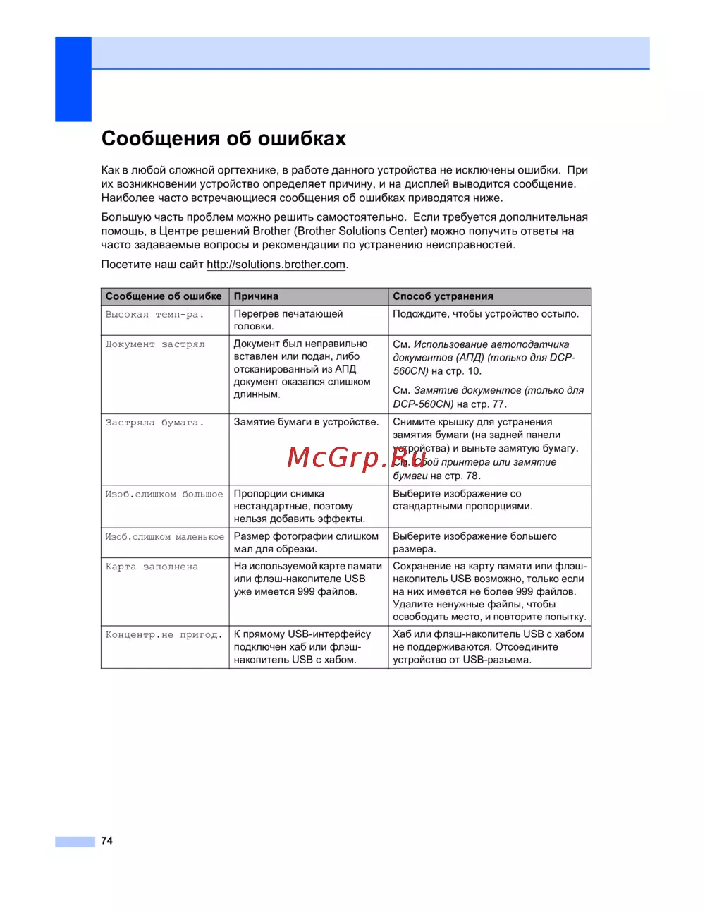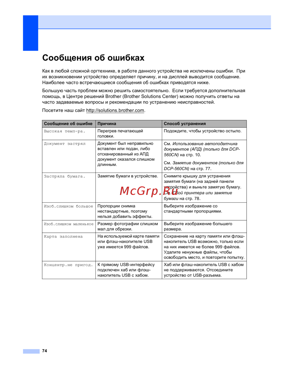 Brother DCP-560CN — частые сообщения об ошибках и их устранение в оргтехнике [82/125]