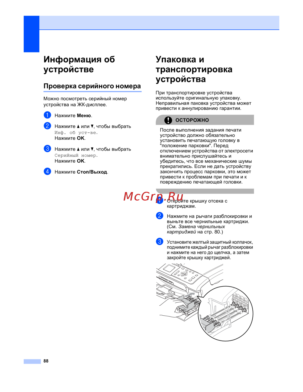 Brother DCP-560CN — инструкция по проверке серийного номера и транспортировке устройства [96/125]