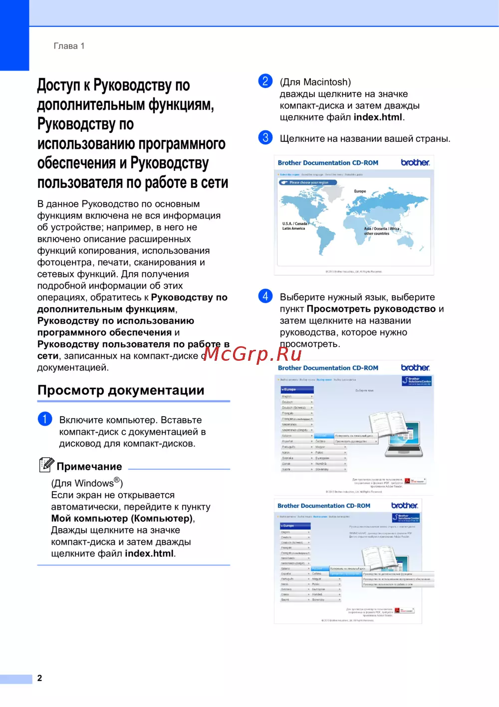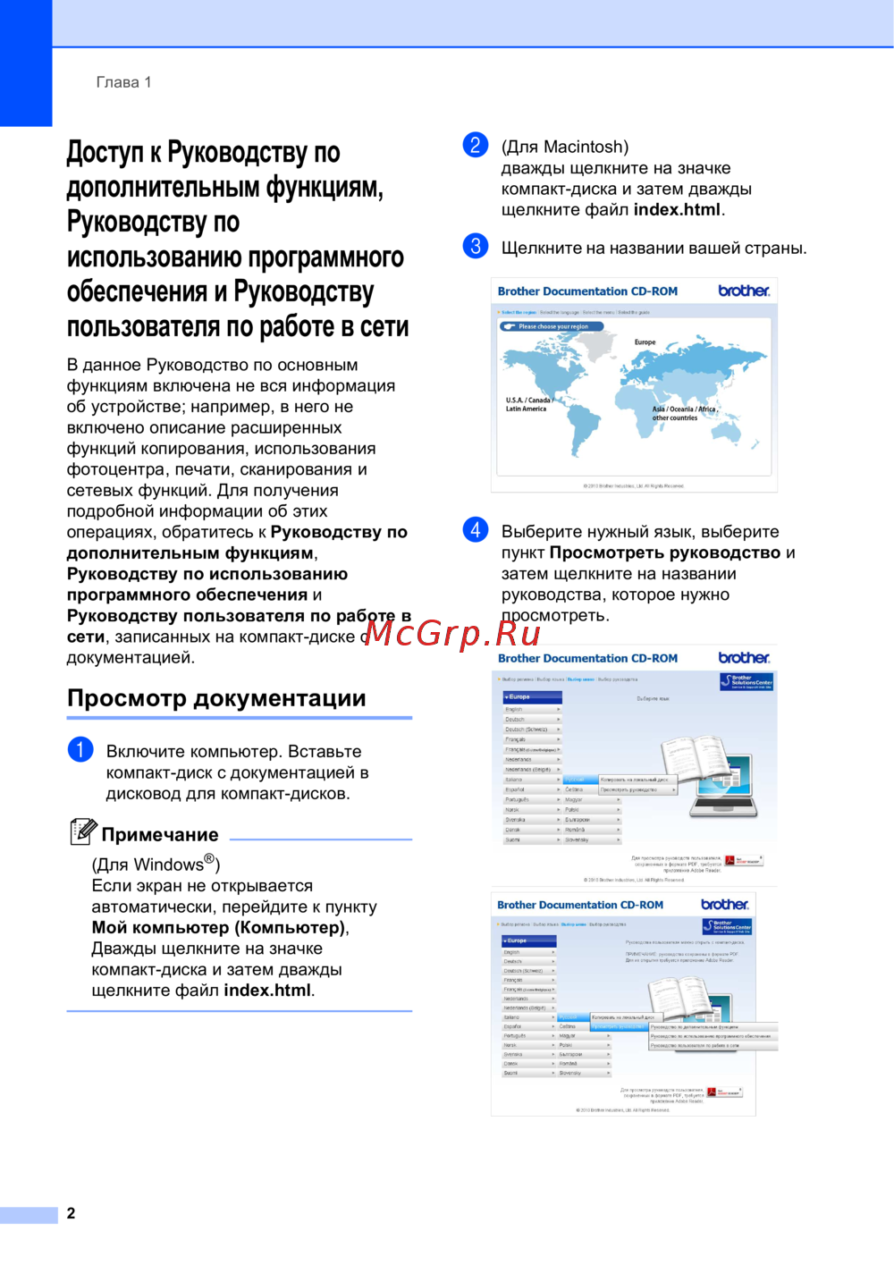 - Доступ к веб сайтам технической поддержки brother для window p.11