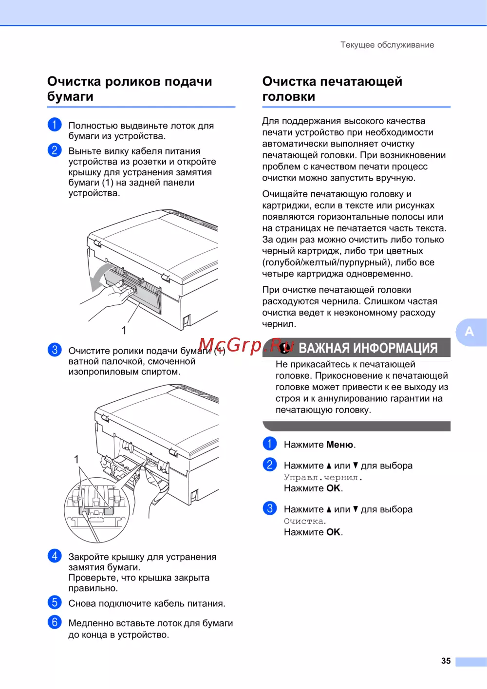 Узнайте, как правильно обслуживать и очищать печатающее устройство для поддержания его производительности. Следуйте простым шагам для очистки роликов и печатающей головки.