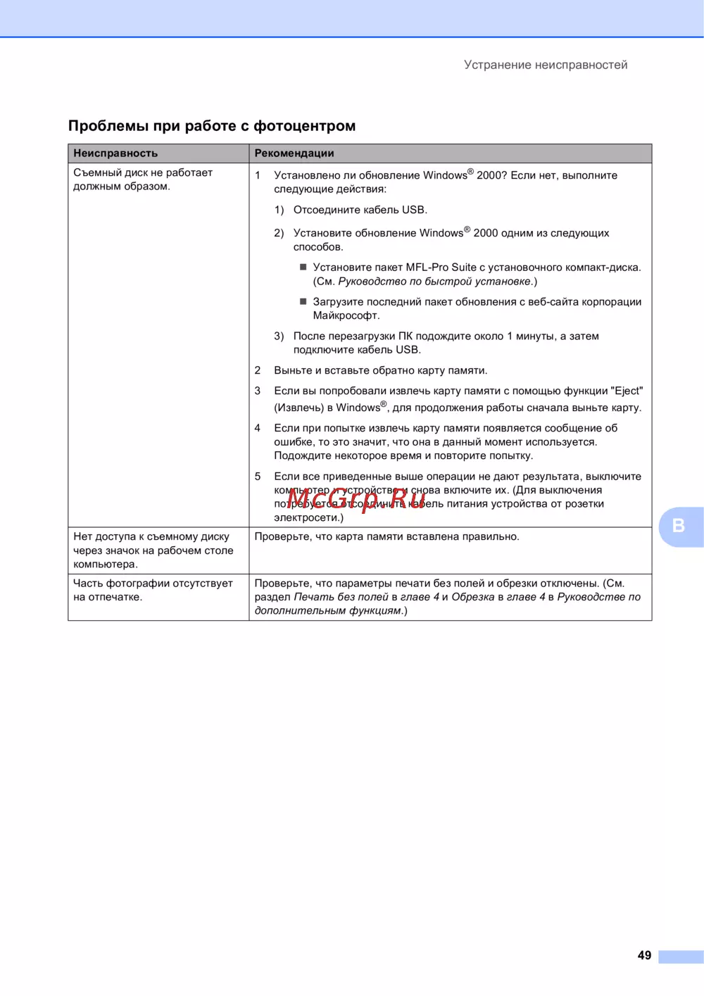 Brother DCP-J315W — устранение неисправностей при работе с фотоцентром [57/85]