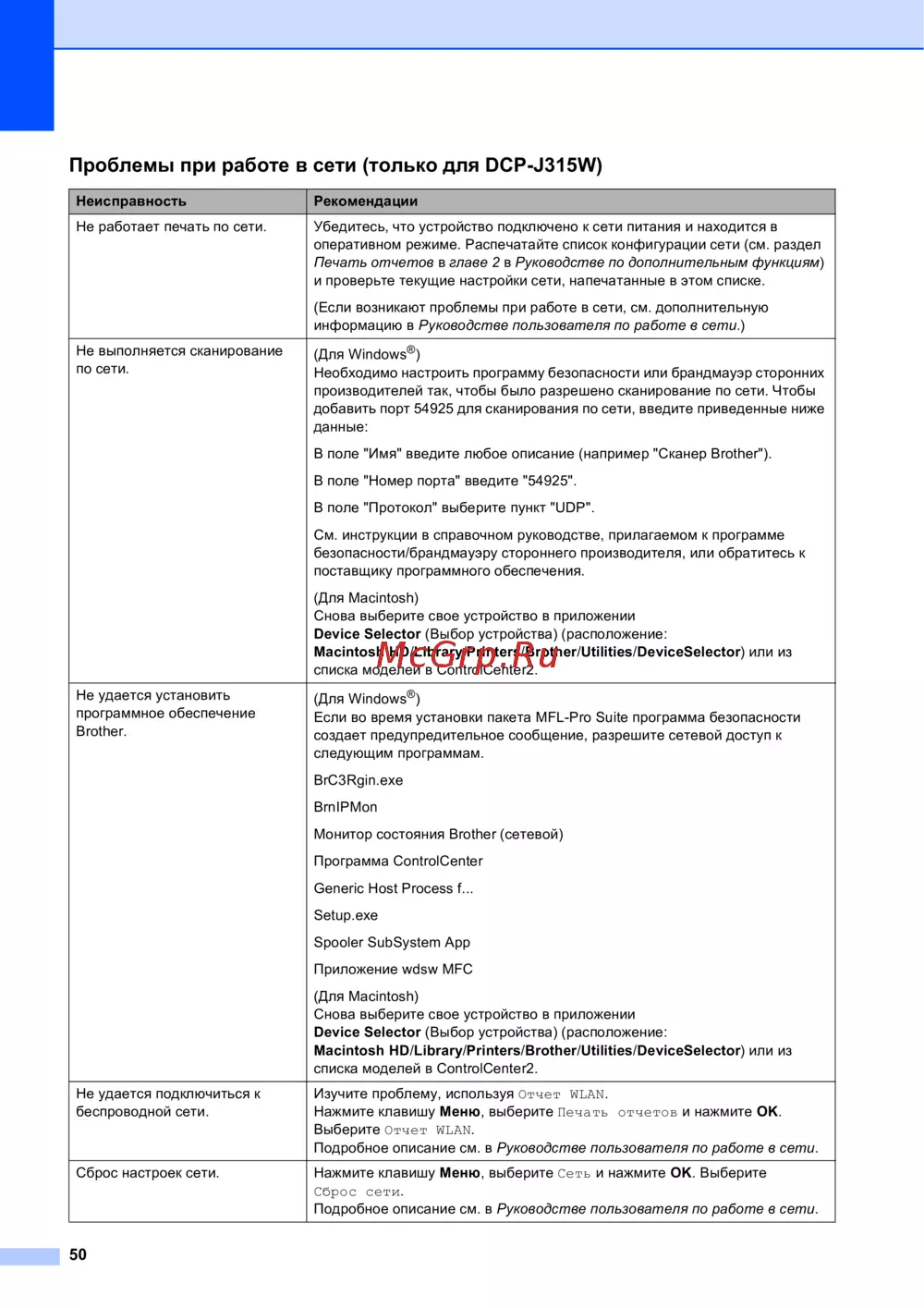 Brother DCP-J315W — решение проблем с сетью: печать и сканирование [58/85]
