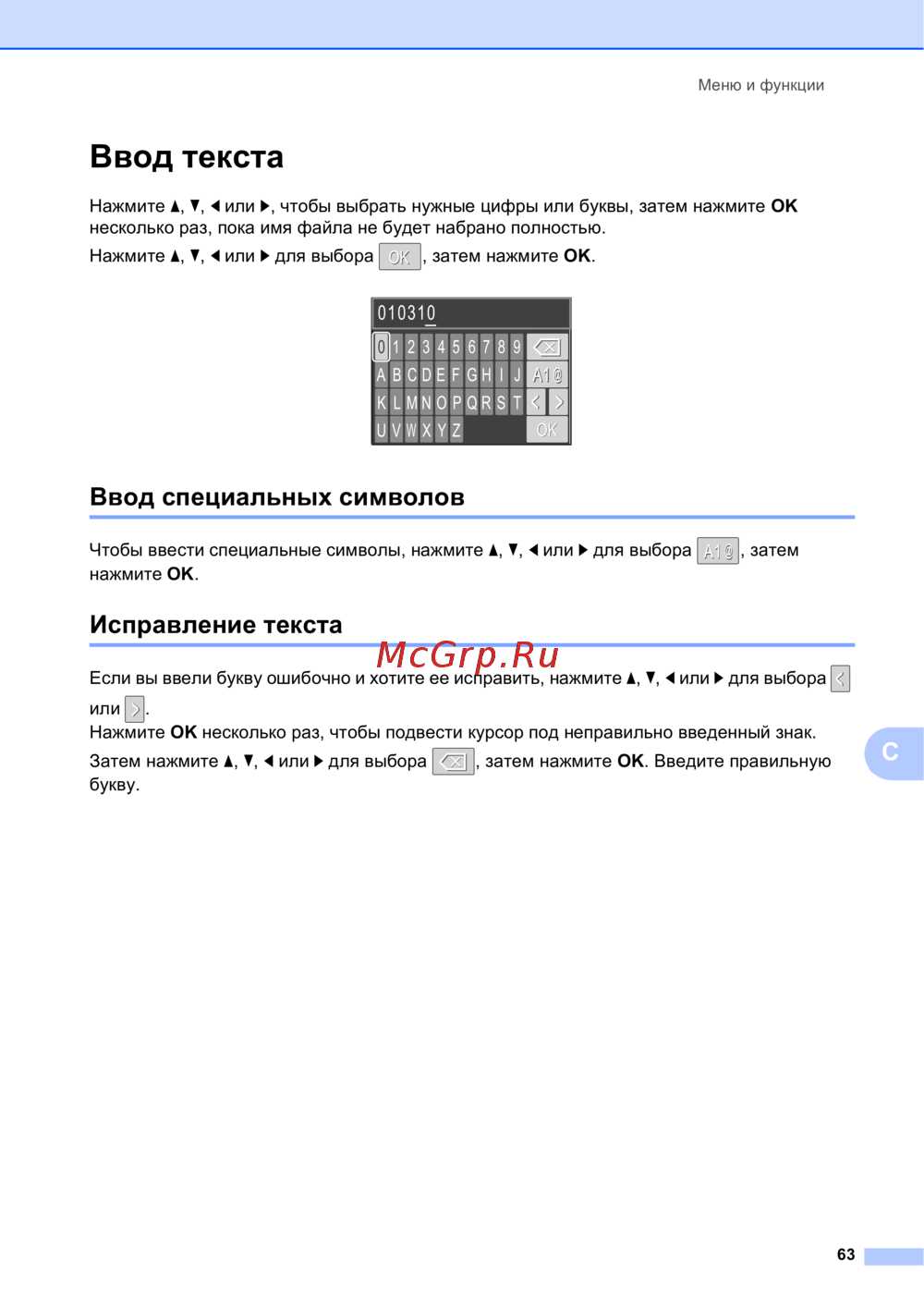 Brother DCP-J315W — инструкция по вводу текста и исправлению ошибок [71/85]