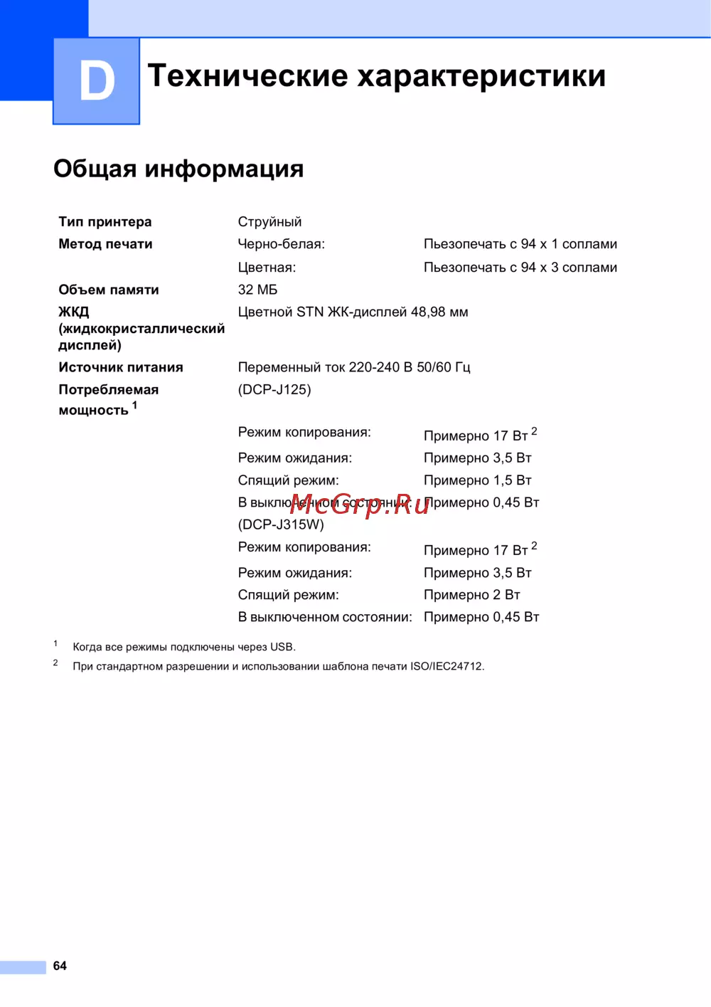 Brother DCP-J315W — технические характеристики струйного принтера и его режимы работы [72/85]