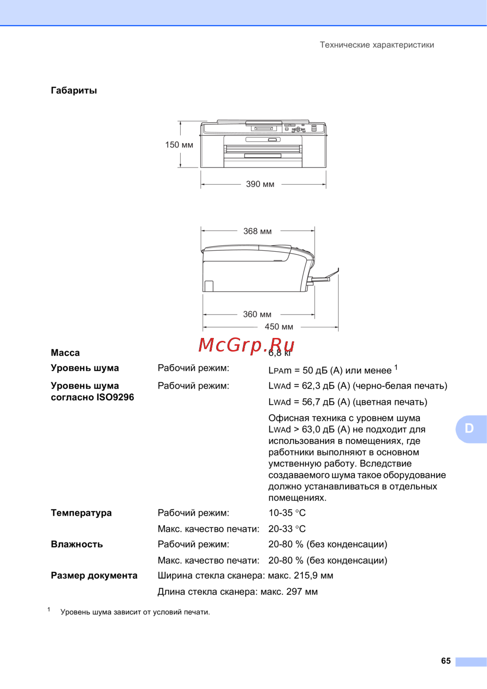 Brother DCP-J315W — технические характеристики офисной печатной техники [73/85]