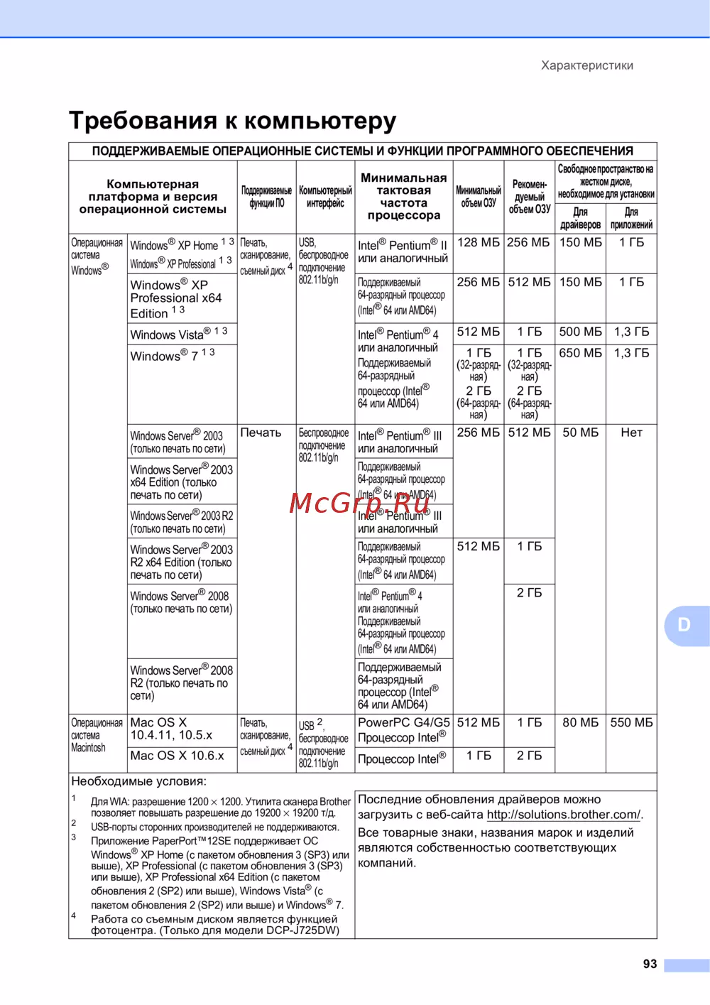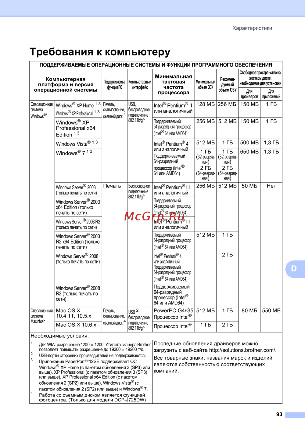 Brother DCP-J725DW [101/107] Требования к компьютеру