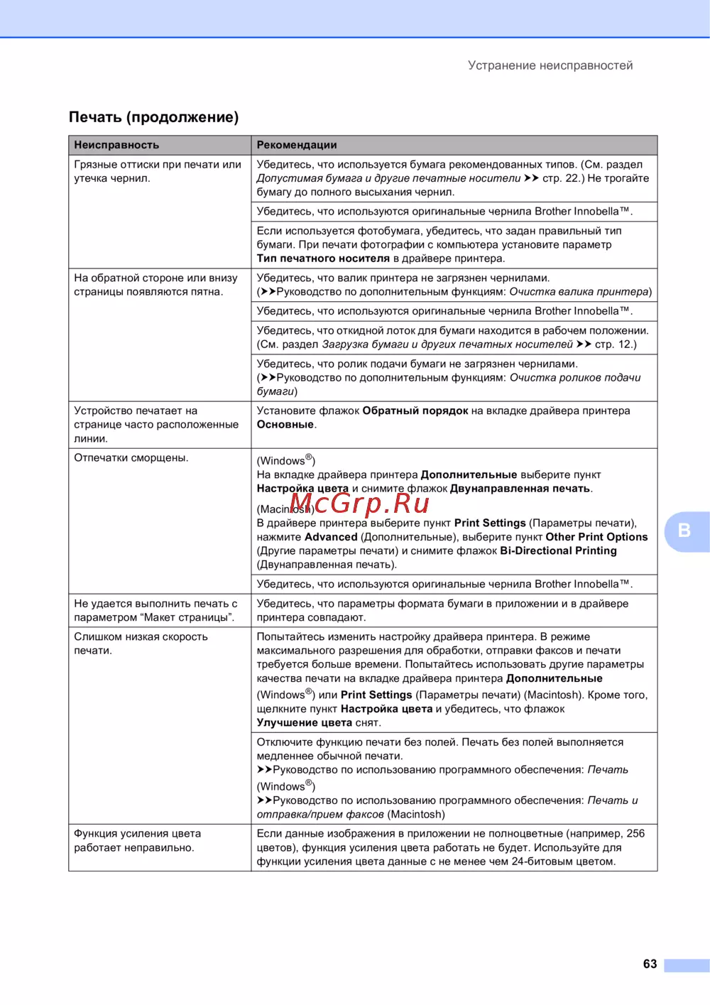 Brother DCP-J725DW — устранение неисправностей при печати: советы и рекомендации [71/107]