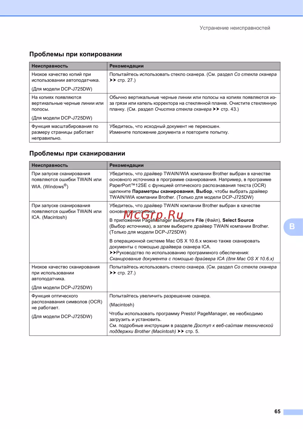 - Проблемы при использовании фотоцентра для модели dcp j725dw p.74