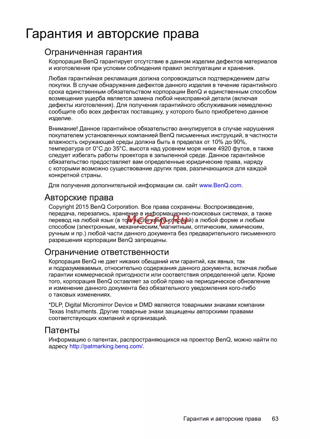 Copyright 2015 BenQ Corporation. Все права сохранены. Воспроизведение,