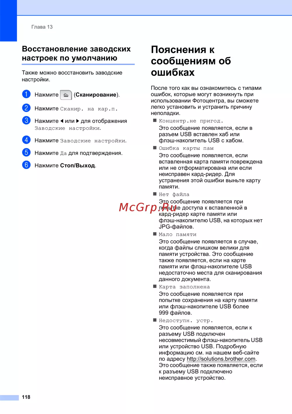 Brother MFC-990CW — восстановление заводских настроек и устранение ошибок устройства [130/241]