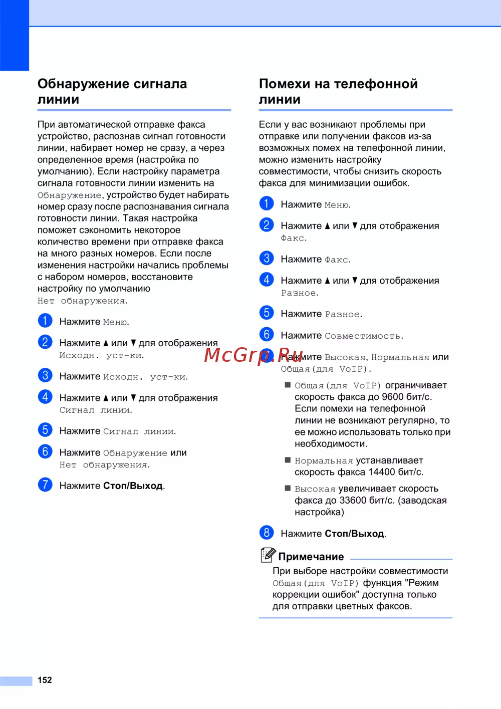 Brother MFC-990CW — настройки факса: Обнаружение сигнала и совместимость [164/241]