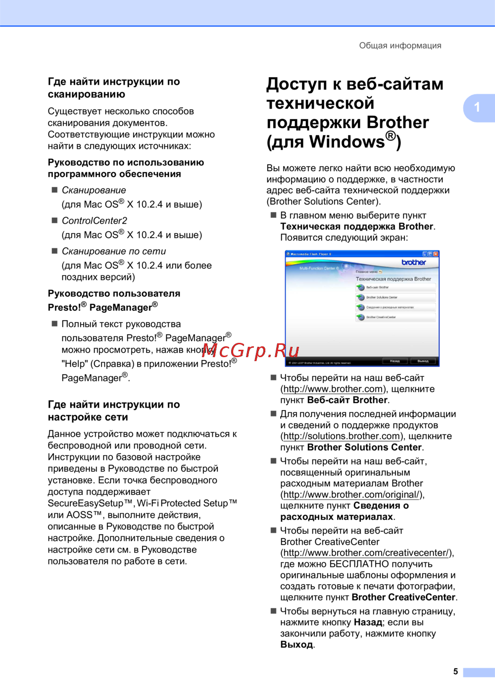 ![Brother MFC-990CW [17/241] Доступ к веб сайтам технической поддержки brother для window](/views2/1025877/page17/bg11.png)